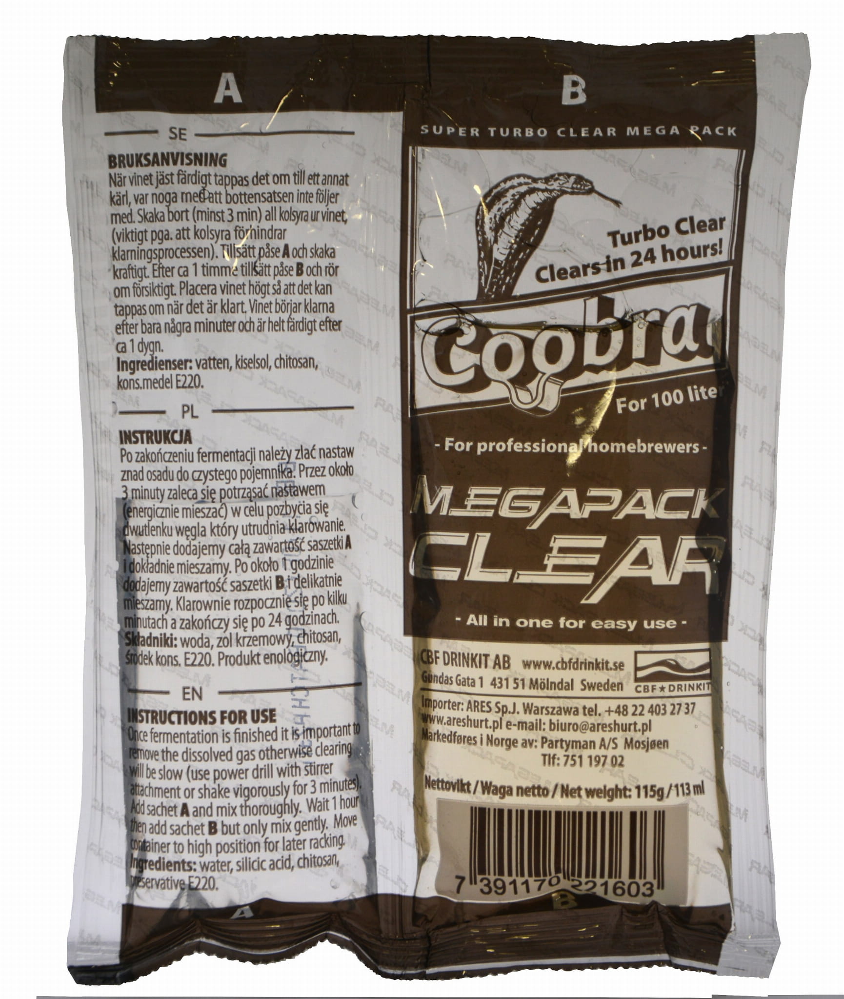 Coobra Turbo Clear Megapack – środek do klarowania nastawu 100l